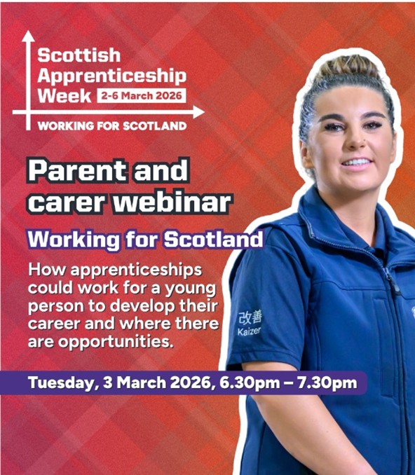 Skills Development Scotland is hosting a free webinar for parents and carers on Scottish Apprenticeships on Tuesday, 3 March from 6.30pm to 7.30pm.